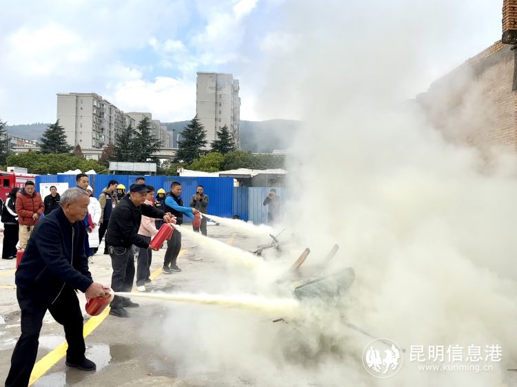 居民使用灭火器进行实操演练扑灭火源。