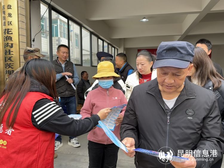 志愿者向居民分发宣传单。