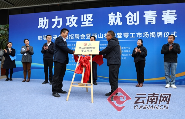11月22日,昆明市西山区2024年“助力攻坚 就创青春”西山招聘专场暨直播带岗线下线上招聘活动在西山人才公园内举行。棕树营零工市场同步揭牌启用。