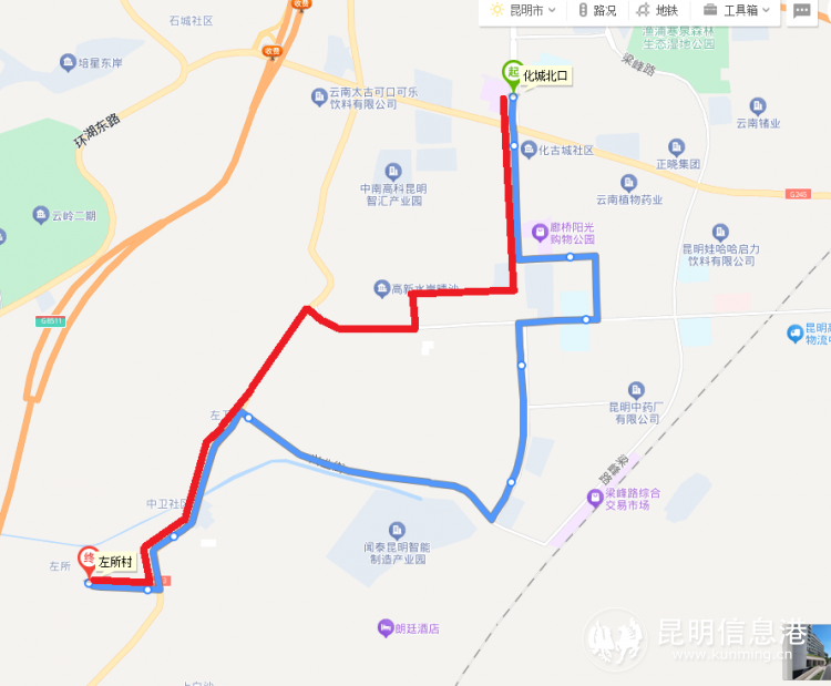 198路终到站延长至“子君村(彩云北路)”公交站,与地铁1号线星耀路站无缝接驳