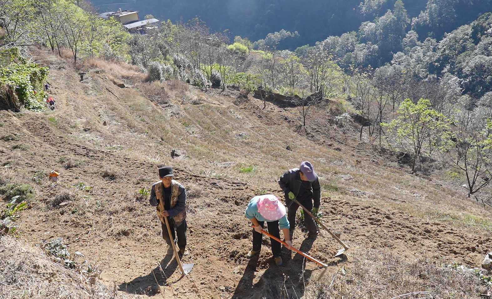 虽已是深冬时节,鲁掌镇浪坝寨村中药材育苗种植基地里依然热火朝天。村民们有的在育苗的大棚里除草,有的在即将移栽下种的地块里翻地松土。