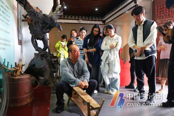 参与联合毕业设计的大学生和高校导师走进宁海强蛟镇进行风鳗调研。(王嘉彬 摄)