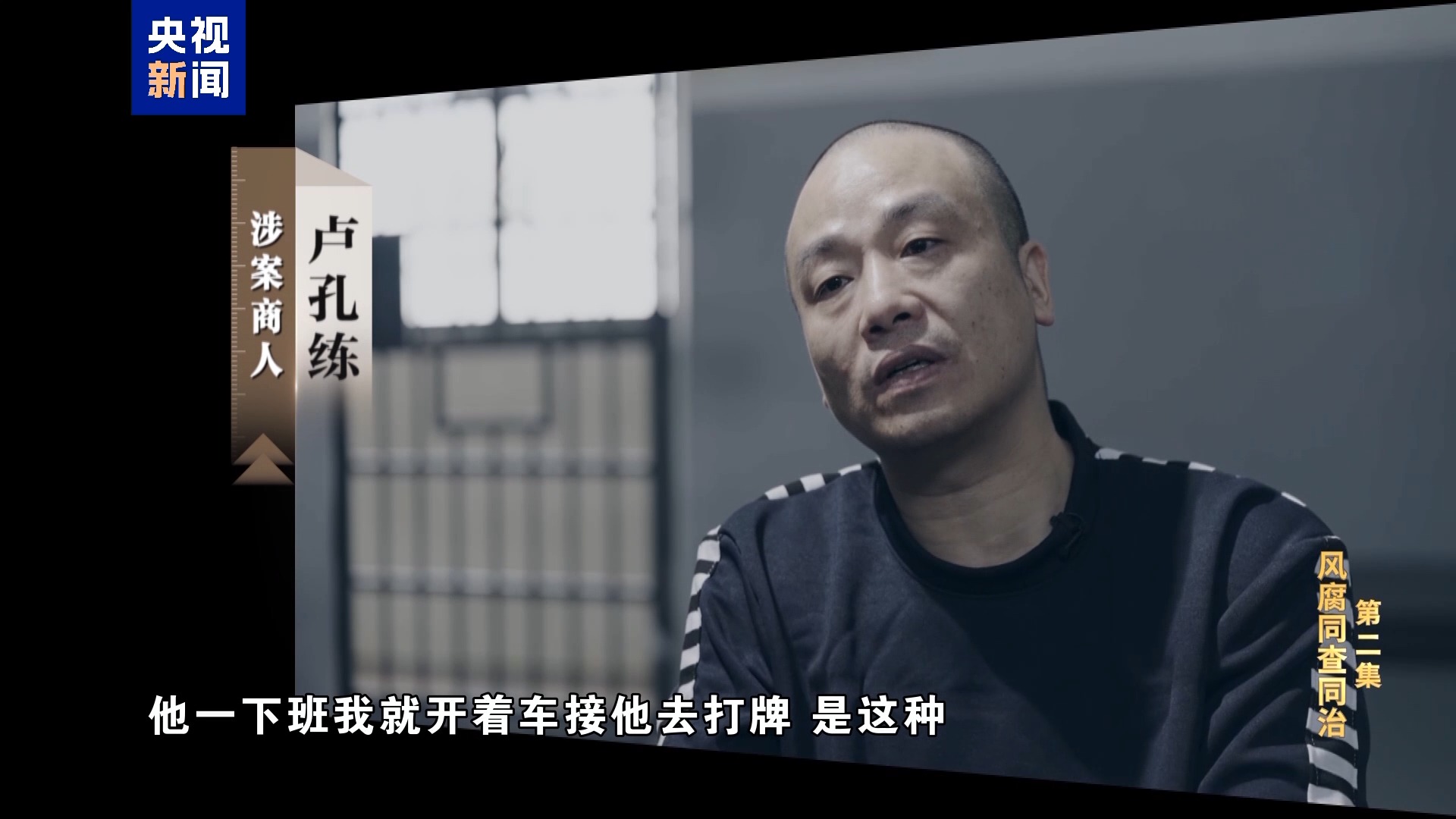 涉案商人 卢孔练:特别喜欢打牌,他一下班我就开着车去接他打牌,是这种。
