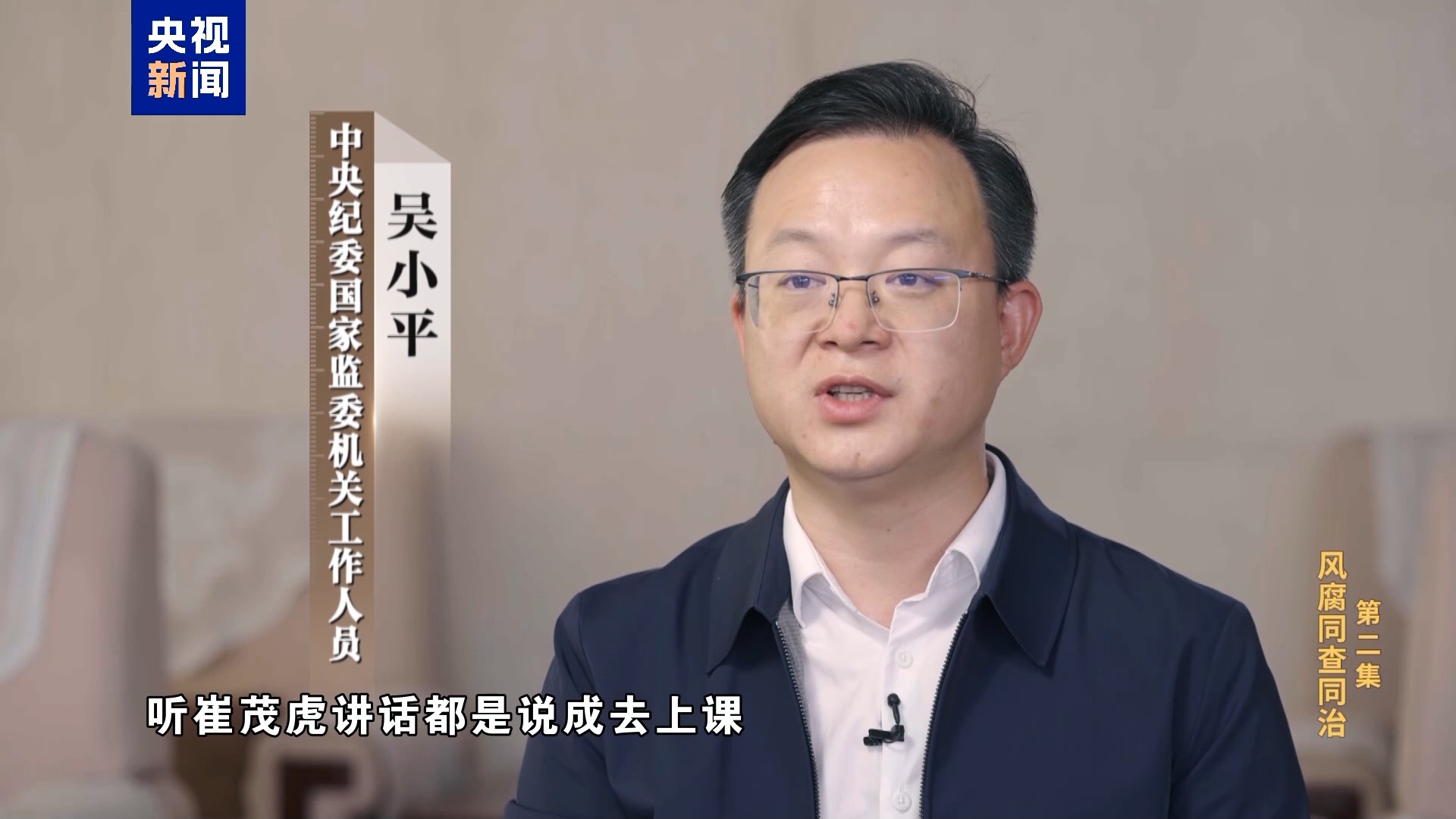 中央纪委国家监委机关工作人员 吴小平:崔茂虎特别能讲,讲起工作来都是长篇大论的,所以丽江当地一些干部每次去开会,听崔茂虎讲话都说成去上课,去听崔老师讲课,实际上散了会就开始到别墅里面跟商人老板在一起吃喝玩乐。