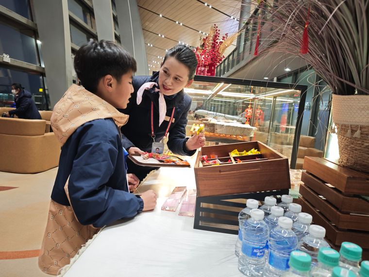此外,东航云南公司在除夕和大年初一举办了丰富多彩的新春系列主题活动,旅客们书写春联、剪制窗花、拓印福字、参与了投壶、猜谜游戏等,让旅客在旅途中感受到家的味道与年的温暖。