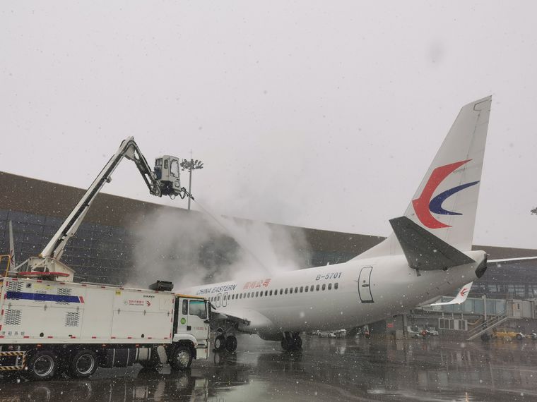 春节期间气温骤降,东航技术云南分公司维修人员坚守岗位,高效地完成了120余架次航班的除防冰工作,确保春节期间航班平稳运行。