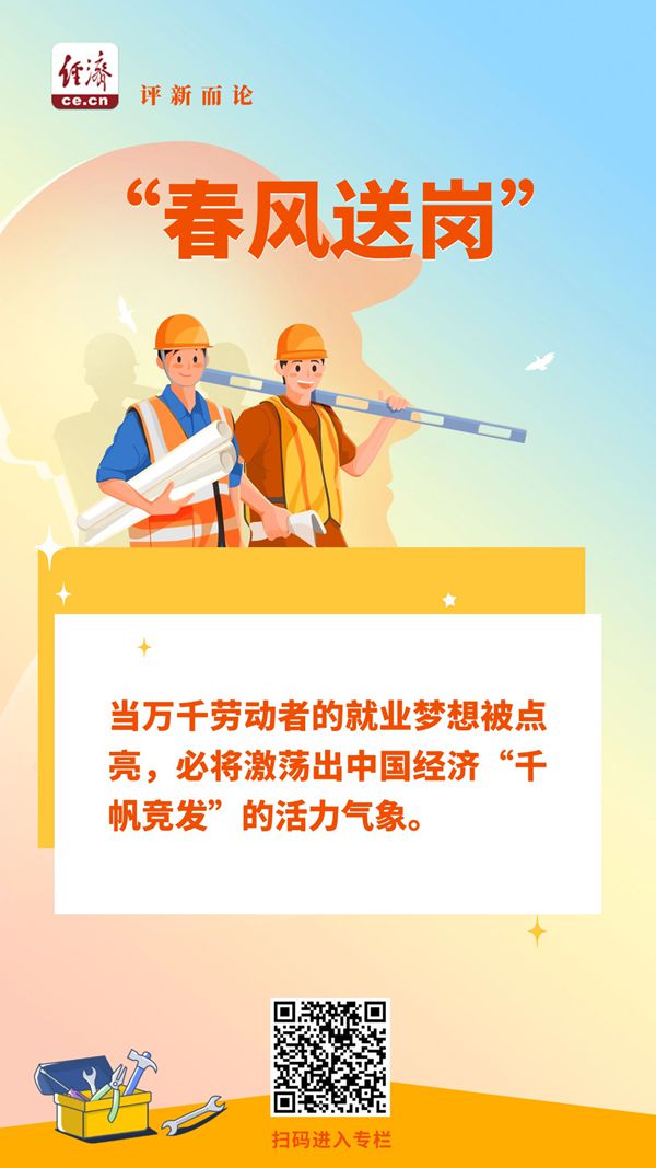 “春风送岗”,“职”引未来,“职”达幸福。当万千劳动者的就业梦想被点亮,必将激荡出中国经济“千帆竞发”的活力气象。(中国经济网 评论员子房先生)