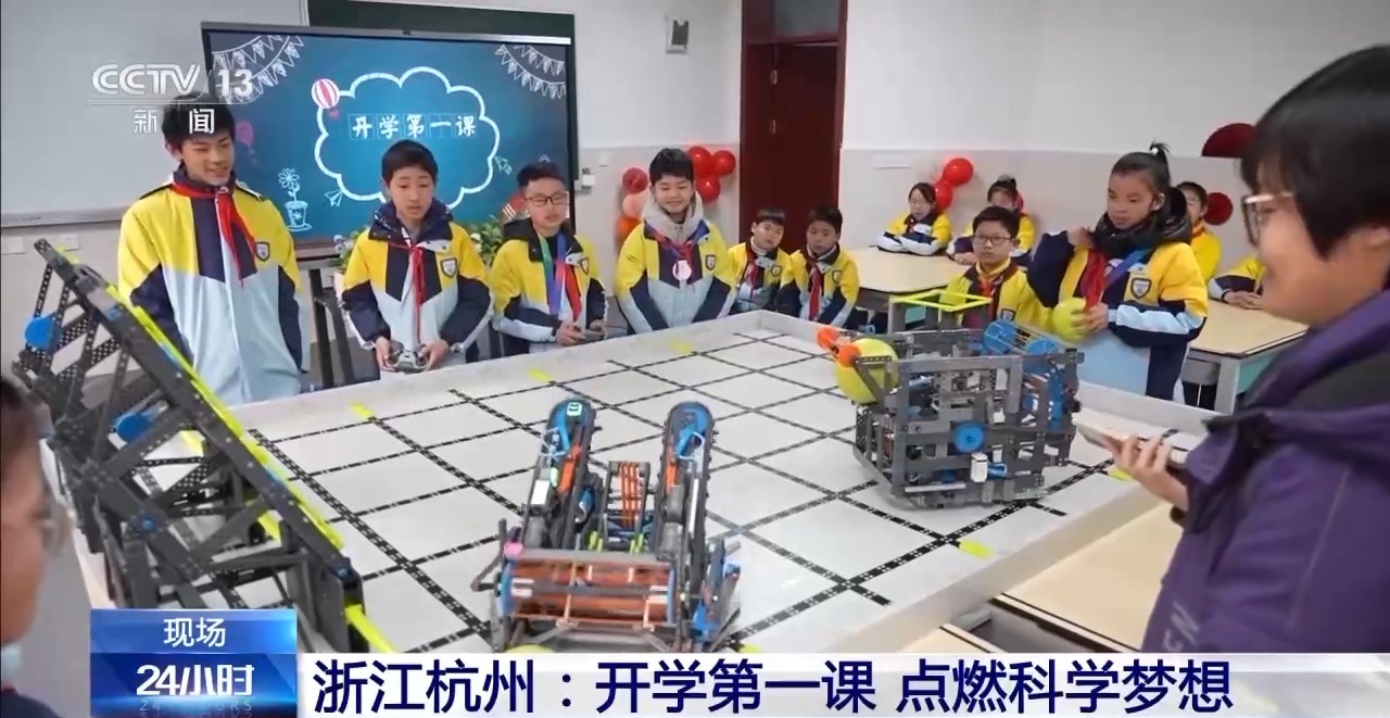 在浙江省杭州市桐庐县,这里学校的开学第一课以“科技”“创新”为主题,带领学生们走进神奇的机器人世界。