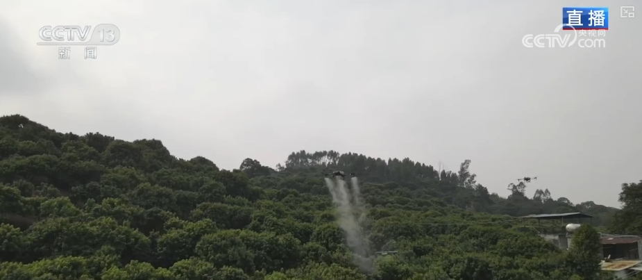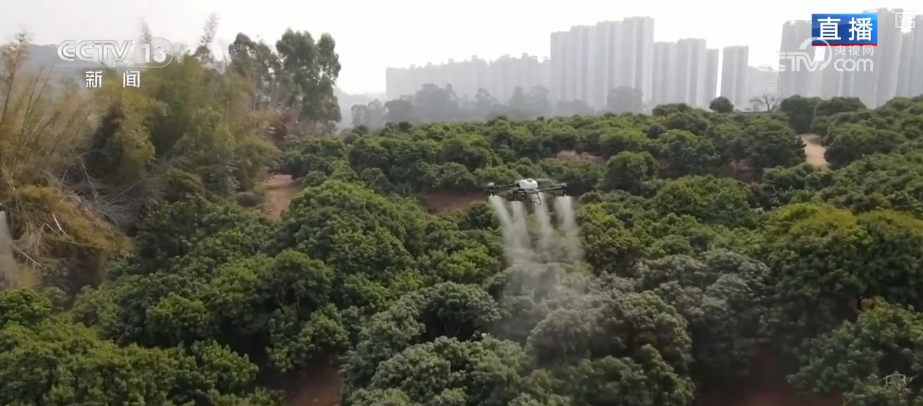 来花率高,也少不了细心地管护。眼下,正是荔枝花开前期很重要的阶段,特别是对病虫害的防治。现在果园用无人机对大片的荔枝树进行喷洒作业,过去是靠人工挨个给荔枝树来喷洒,不仅费时费力,而且每棵树从高到低喷洒非常不均匀。我们可以算一笔时间账,过去这里百亩地需要6个人3天的时间才能完成作业,如今,一个人一架无人机只需要3小时,而且喷洒更加均匀,可以说荔枝的管护在科技的推动下,时间大大缩短,效率却提高了不少。