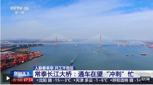 中铁大桥局常泰长江大桥项目部生产副经理 赵政:所有的工人过完春节以后立马回工地,把这些东西完善。大家都想早一点看到这个桥通车。
