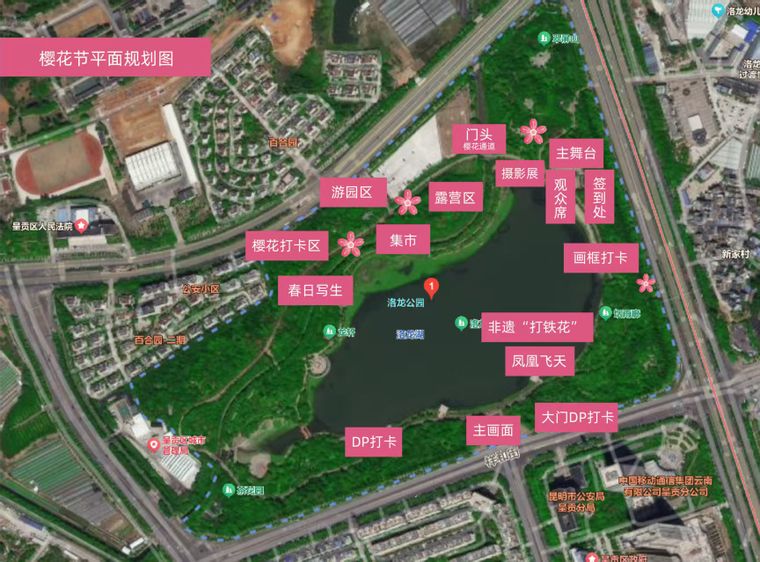 除了无人机和打铁花外,在樱花节期间,呈贡将围绕“赏花+”的方式,解锁多种新玩法,市民游客可体验到“赏花+非遗”“赏花+文化”“赏花+美食”“赏花+潮玩”等丰富多彩的特色春季新玩法。民族管弦音乐会、民族舞蹈专场、汉服舞专场、“不一样的城市管理人”文艺汇演等60余项文化活动,舞台上天天有好戏,场场有精彩。