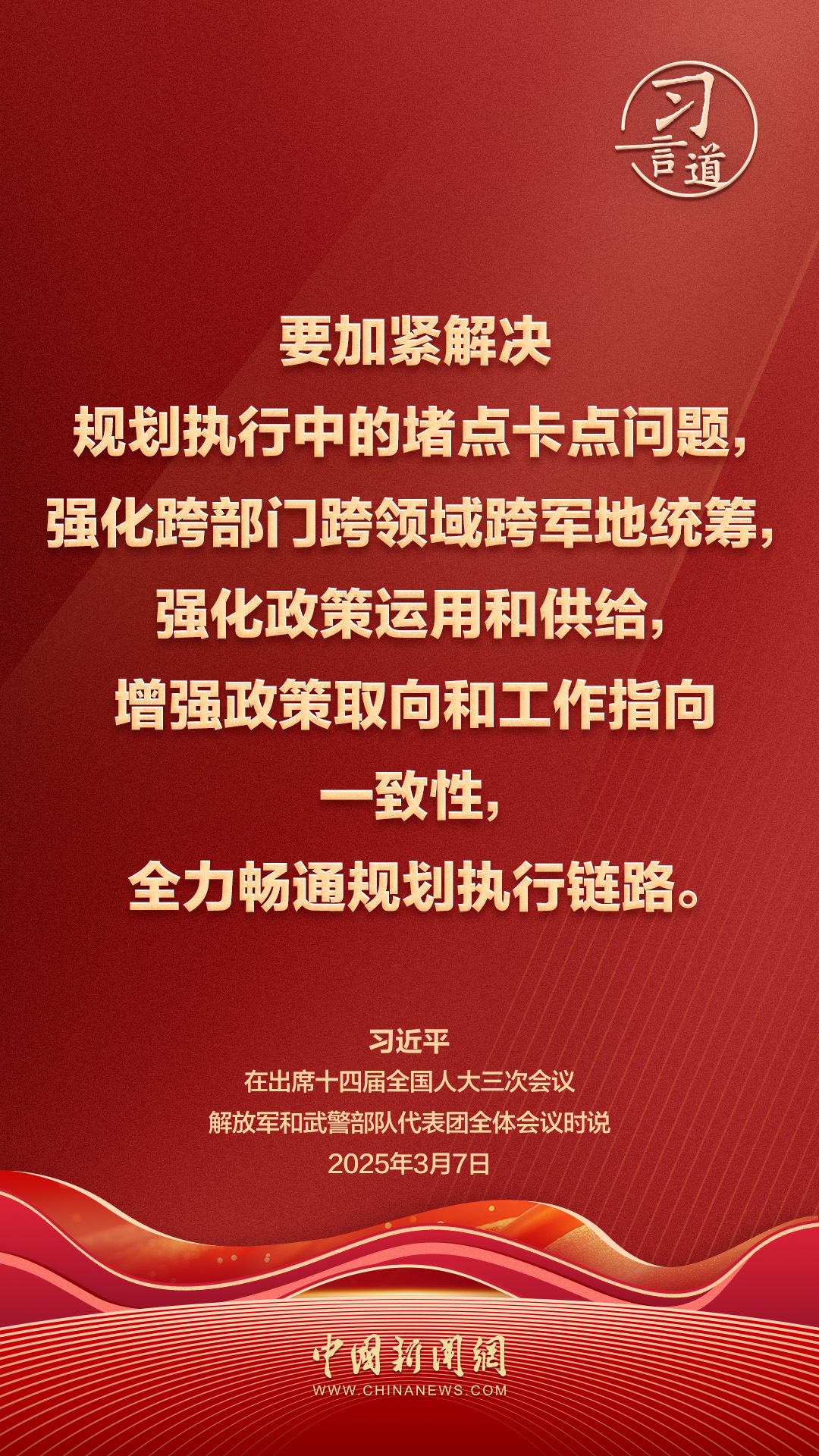 中共中央总书记、国家主席、中央军委主席习近平7日在出席十四届全国人大三次会议解放军和武警部队代表团全体会议时强调——