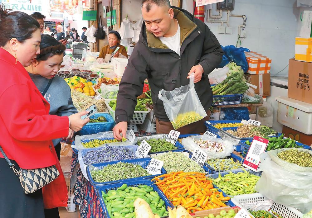 眼下正值山野春味集中上市期,在昆明大观篆新农贸市场的大小摊位上,香椿、蕨菜、石斛花、金雀花、棠梨花等时令春菜琳琅满目,前来购买的市民游客络绎不绝,争相品尝云南“舌尖上的春天”。(记者杨峥)