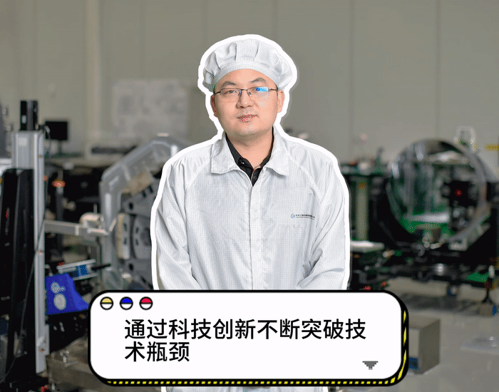 在长光卫星相机装调间,王升(右二)在调试卫星光学遥感载荷组件时与团队成员讨论细节。