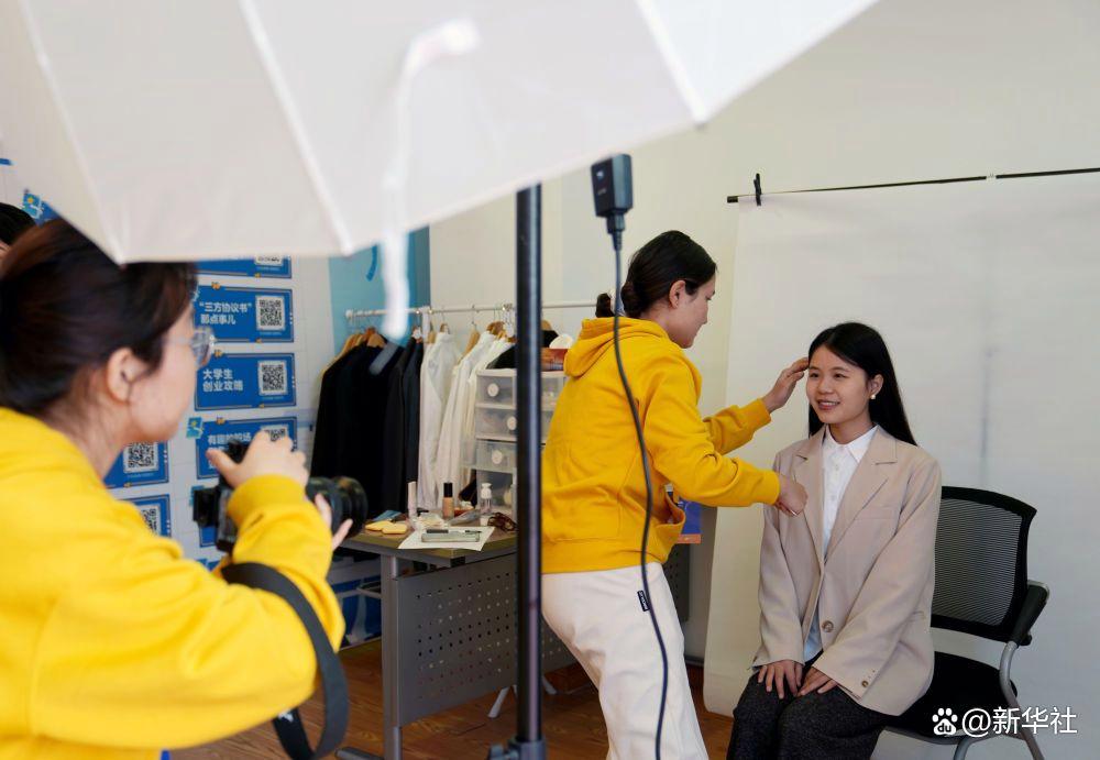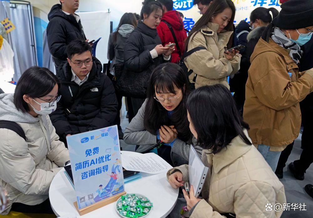 在上海一个大型招聘会现场,工作室团队为求职者进行简历优化指导。