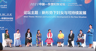 2021中国—东盟妇女论坛现场。全国妇联开展“凝聚女性力量 共建‘一带一路’”主题交流,连续主办“指尖上的丝绸之路——丝路妇女论坛”等活动。 |