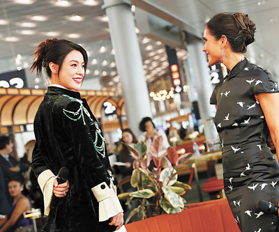 2024年10月10日,在法国巴黎戴高乐机场举行的“中法金秋文化盛宴”活动上,中国越剧演员陈丽君(左)与法国歌手联袂演绎越剧选段。 |