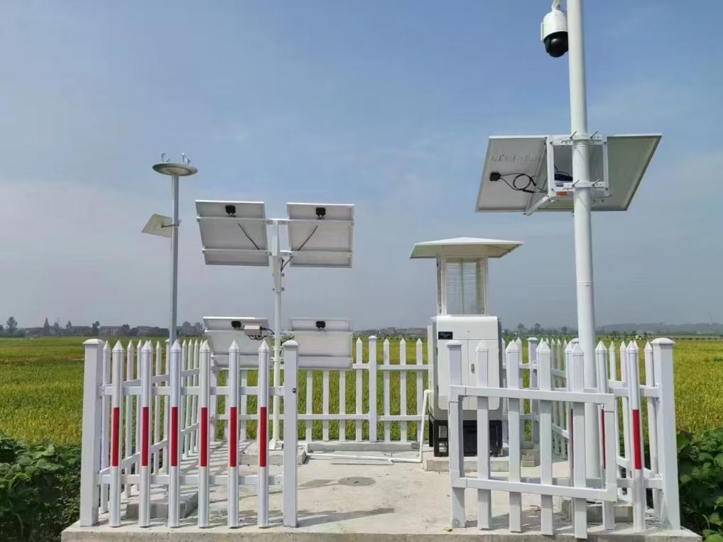 常德市桃源县金凤桥村智慧农田里的气象观测站和智能虫情测报站。(受访者供图)