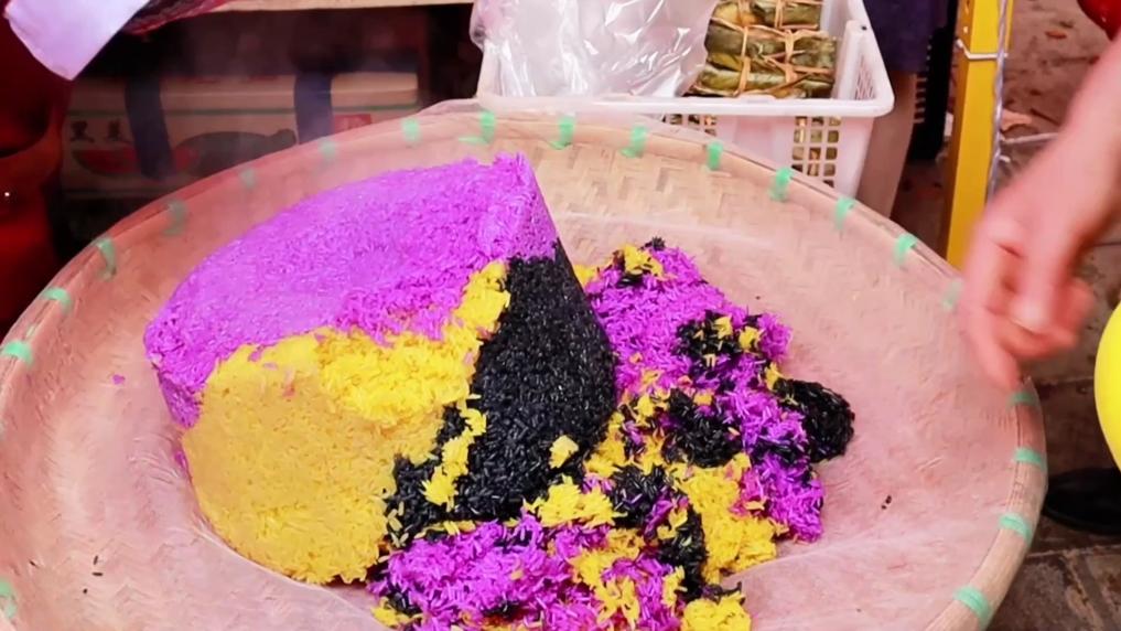 在师宗县,游客还可以亲身体验花米饭制作。花米饭是师宗县当地用来欢庆节日的美食,以糯米为原料,从不同的可食用天然植物中提取汁液作为染料。