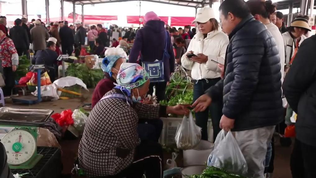 走进云南弥勒滇东南农产品交易市场,便能感受到浓郁的春日气息,各摊位摆放整齐,选购市民络绎不绝,精心挑选着心仪的菜品。