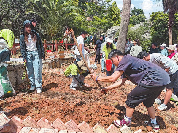 另一边,昆明理工大学艺术与传媒学院景观设计专业的学生们,也把课堂搬到了颐明园社区。“重塑”社区居住景观的同时,师生设计成果也有了展示场所。