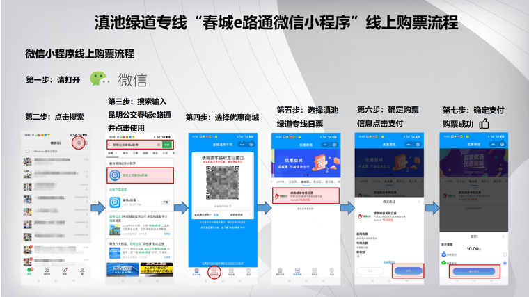 市民、游客可通过昆明公交“春城e路通微信小程序”线上购票或在乘坐滇池绿道专线时向工作人员支付现金购买车票。