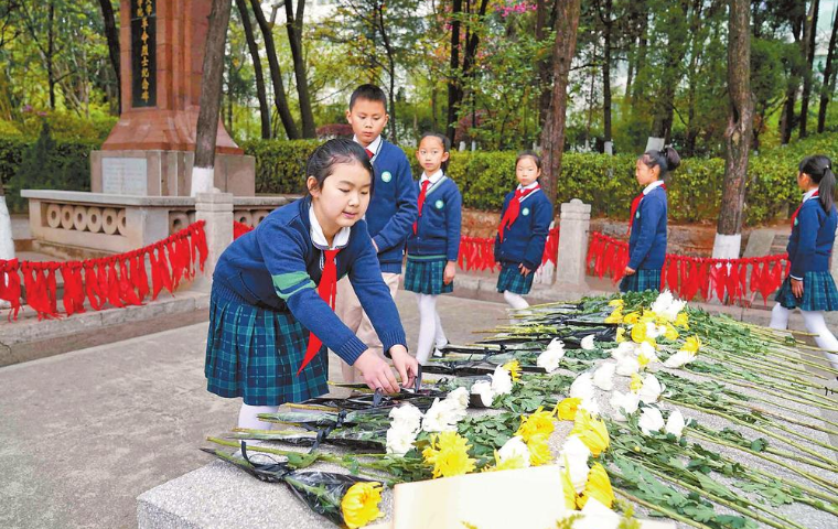 上午9时30分,全体人员面向烈士墓肃立默哀,向烈士行鞠躬礼。伴随《献花曲》,全体人员依次缓步上前,瞻仰烈士墓并向烈士敬献鲜花。悼念仪式结束后,部分党员在烈士墓前重温入党誓词。在博物馆讲解员带领下,大家有序参观西南联大旧址及博物馆,通过珍贵文物与影像资料,感悟战火中西南联大师生教育救国、文化抗战的崇高理想。(云报全媒体记者 陈怡希)