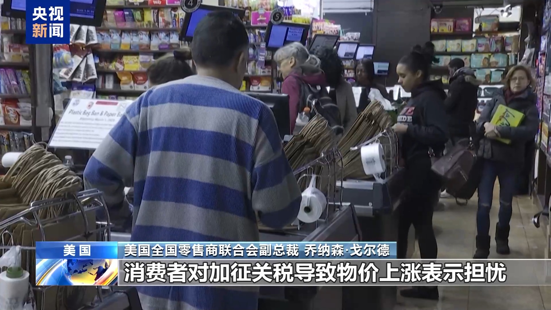 美国全国零售商联合会副总裁 乔纳森·戈尔德:他们非常担心,在过去几个月里,我想你已经看到消费者的信心下降了。我们最近做了民意调查,消费者对加征关税导致物价上涨表示担忧。在宣布加征关税的那一天,在华盛顿特区的大约75家小企业就表示,他们非常担心自己的生存能力,继续经营下去的能力,他们必须做些什么来化解这些成本,他们只能把这些成本转移给别人。