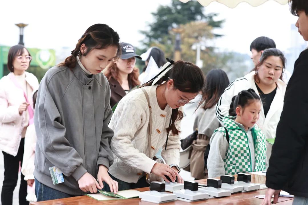 “春信寄思”环节以墨痕丈量思念的深度:游客执笔手书心学箴言,或将对故人的追忆凝于寄思卡笺纹,或将远方的牵挂托付邮筒,让慎终追远与精神觉醒在方寸纸笺间同频共振。“墨契心学”则让《传习录》经典跃出典籍,参与者临摹相关语句制成流苏书签,当各样的笔迹随春风摇曳,思想完成从纸间到心田的迁徙。簪花体验区更以“簪彩映心”为媒,令佩戴春花的市民在镜前驻足自观,借草木荣枯体悟“心外无物”的深层哲思。