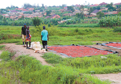 卢旺达是首个向中国出口干辣椒的非洲国家,受惠于非洲农产品输华“绿色通道”等举措和零关税政策,卢旺达干辣椒已实现稳定对华出口。图为卢旺达首都基加利的农户在晾晒辣椒。