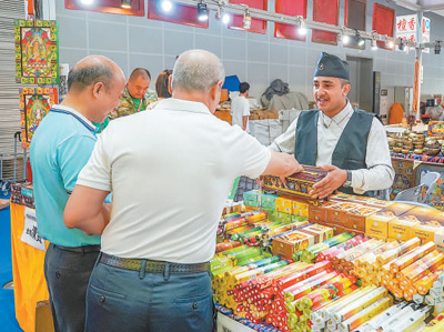 2024年9月,第二十一届中国—东盟博览会在广西壮族自治区南宁市开幕。图为尼泊尔展商推介檀香产品。