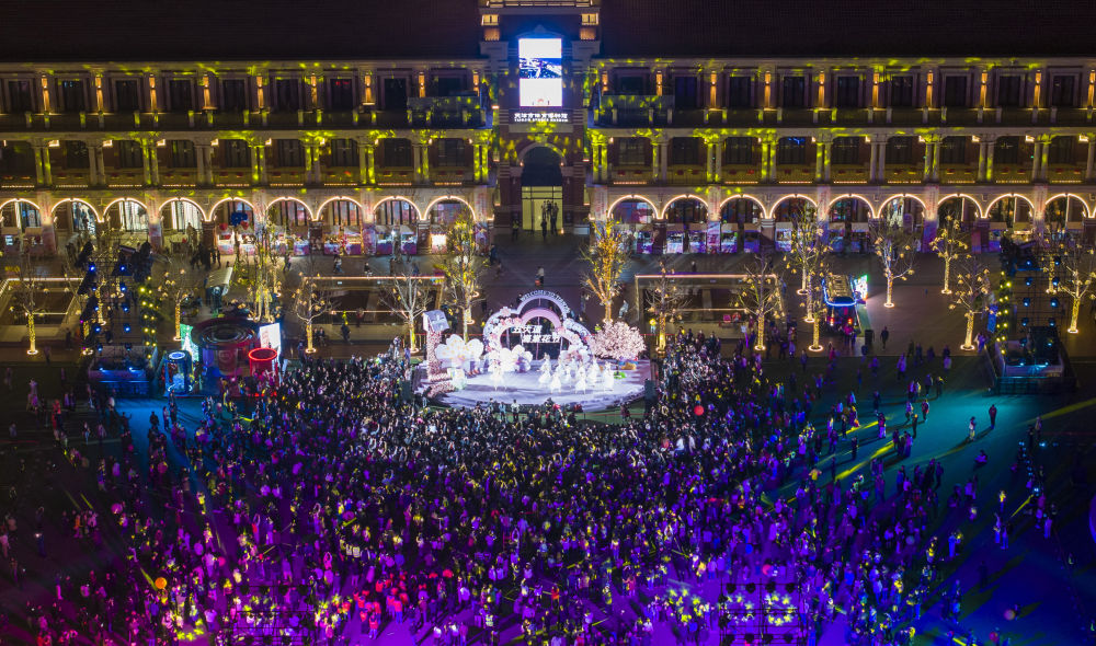 这是4月3日拍摄的第三届五大道海棠花节启幕现场(无人机照片)。新华社记者 赵子硕 摄