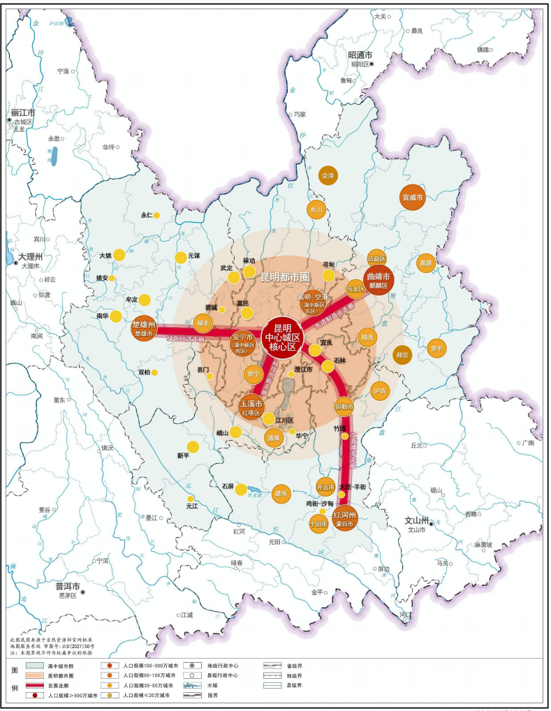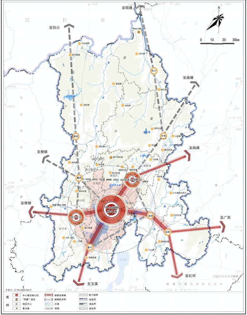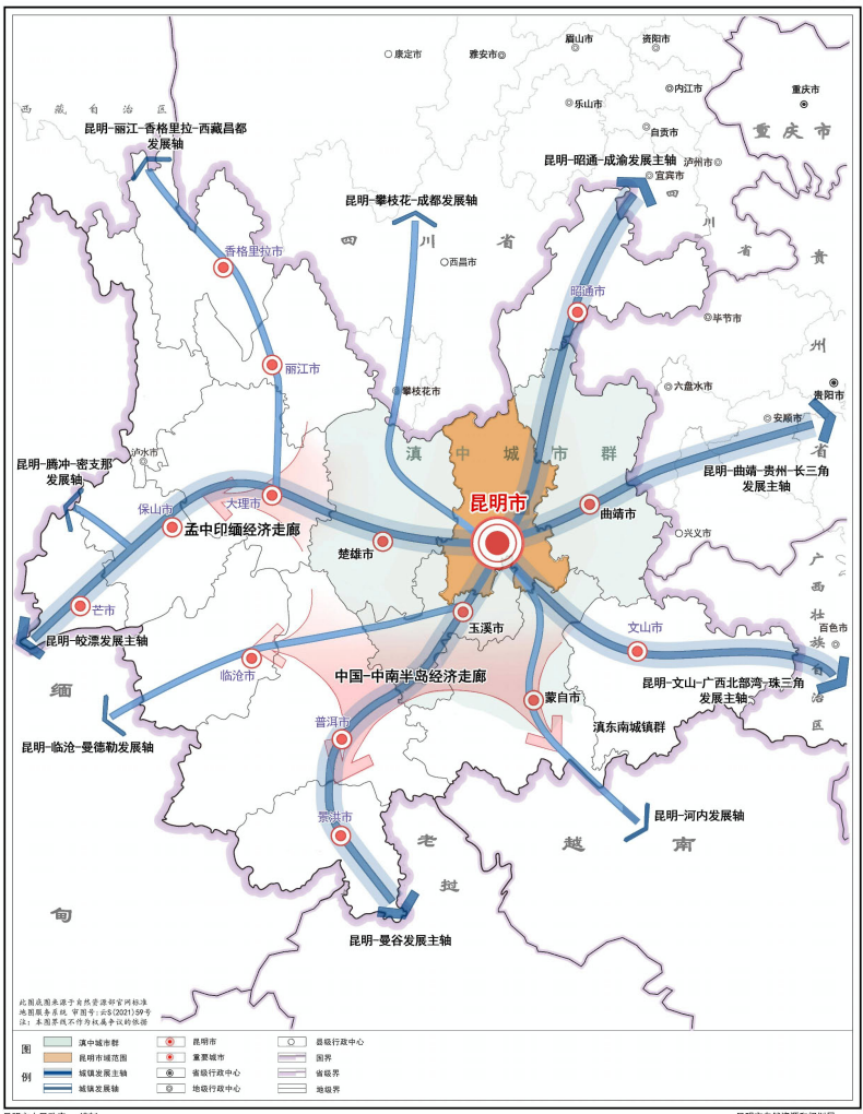 到2035年:建设成为面向南亚东南亚的区域性中心城市,形成高质量发展的空间格局,滇池流域内外协调发展格局基本形成。