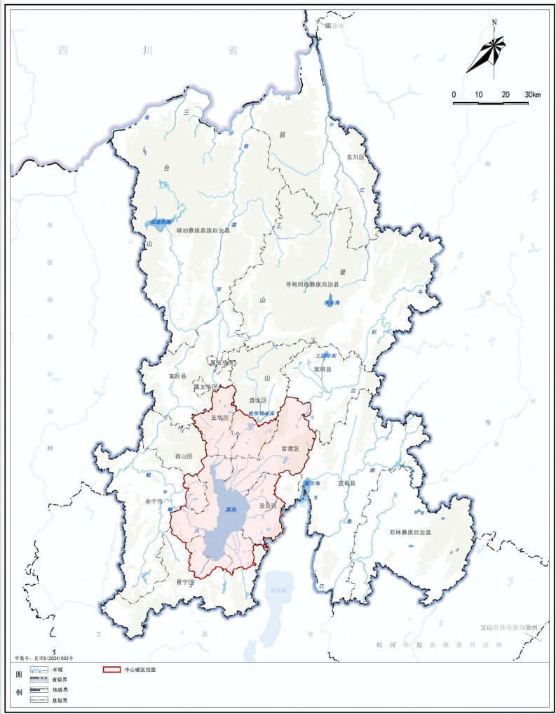 《规划》中提及此次规划范围包括市域和中心城区两个层次。市域规划范围为昆明市行政辖区,包括五华区、盘龙区、官渡区、西山区、呈贡区、东川区、晋宁区、安宁市、富民县、宜良县、嵩明县、石林彝族自治县、禄劝彝族苗族自治县、寻甸回族彝族自治县。