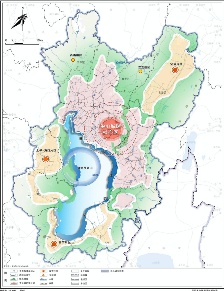 值得关注的是,《规划》中首次将太平新城和晋宁纳入“昆明中心城区”范围。