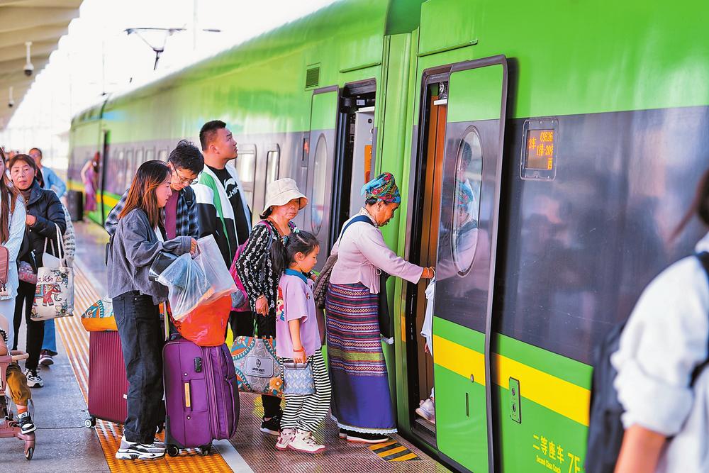 清明期间,国铁昆明局科学配置运力,精准实施“一日一图”,充分考虑清明假期踏青、赏花游客及省内部分民族自治州放假特点,对旅游热门目的地大理、丽江、西双版纳等合理增开列车。安排开行昆明至大理方向动车89列、昆明至丽江方向动车18列、昆明至西双版纳方向动车58列。国铁昆明局单日开行客车最高达518列,全力满足广大旅客出行需求。(云南日报记者 李承韩)