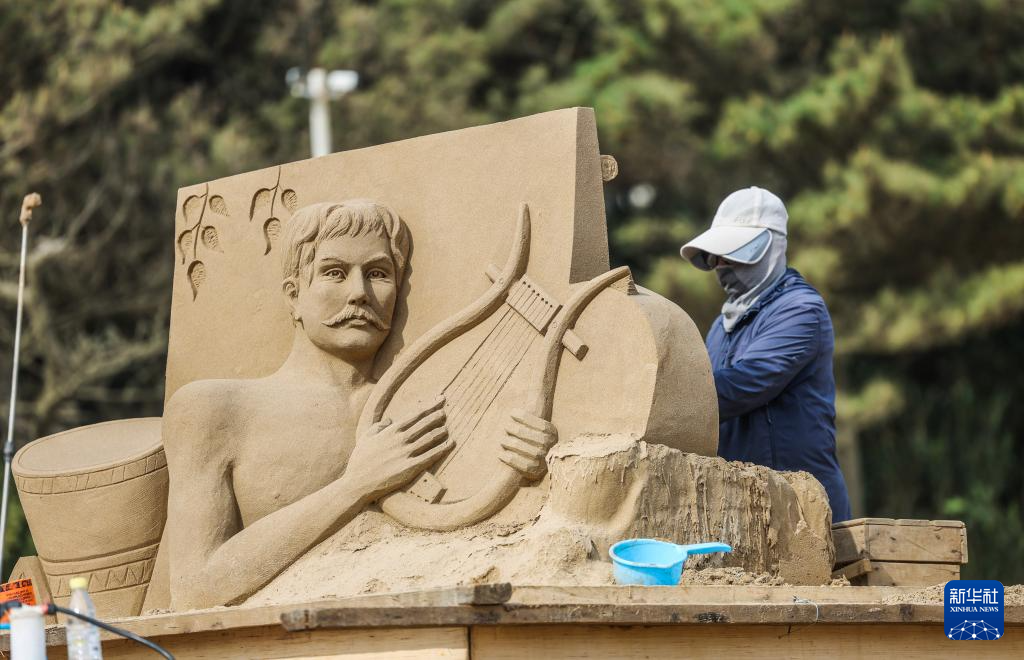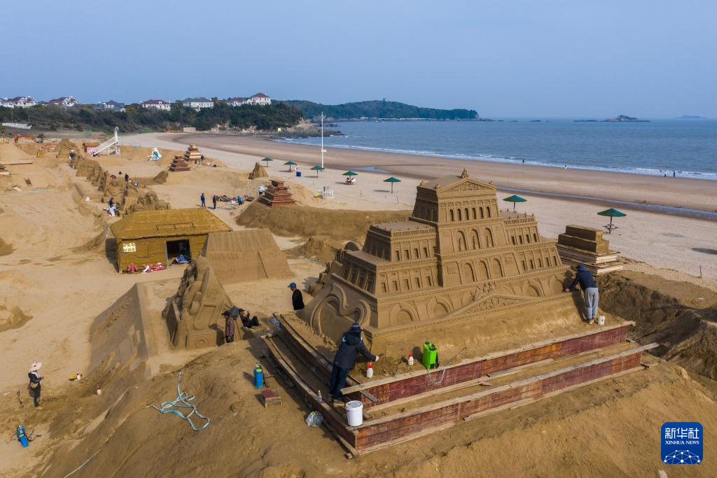 目前,位于浙江省舟山市朱家尖南沙景区的2025第二十六届舟山国际沙雕节沙雕作品创作有序推进。本届沙雕节以“音乐南沙”为主题,以世界经典音乐和流行文化音乐为创作主题,将于五月前完工。(新华社 记者徐昱 摄)