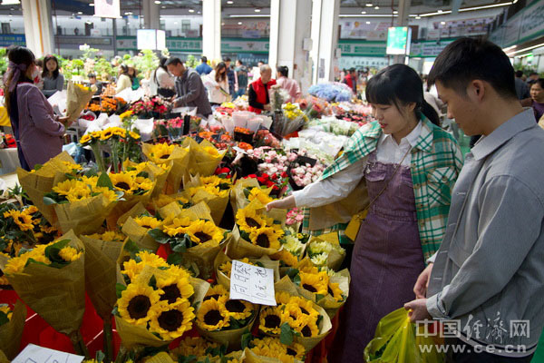 3月30日,云南昆明斗南花卉市场,顾客在挑选鲜花。(中国经济网记者 张晶/摄)