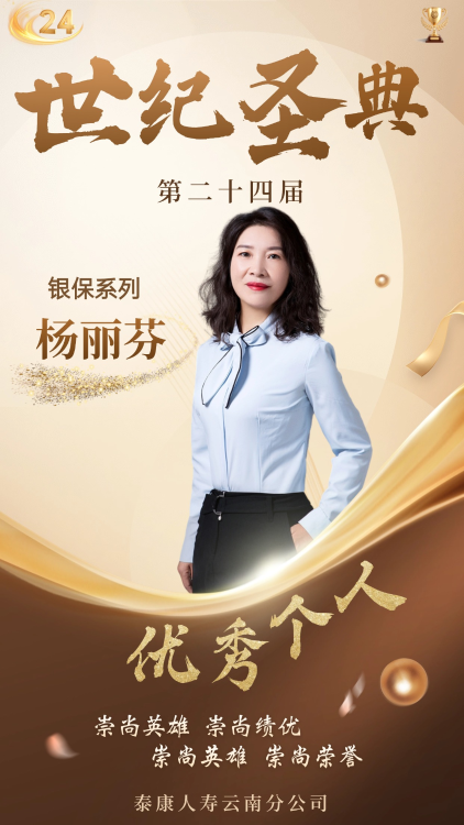 今年有幸达成世纪圣典,是我一直以来的梦想和目标,能够见到董事长是我梦寐以求的愿望,也是我职业生涯的一次里程碑,今天取得的成绩,除了自身的努力,还要感恩泰康公司给我施展才能的平台,也要感谢所有领导的默默支持和鼓励,未来的路上我一定继续努力,践行新寿险,坚持优增优聘,做最大绩优高客,再创佳绩!(供稿:泰康人寿云南分公司)