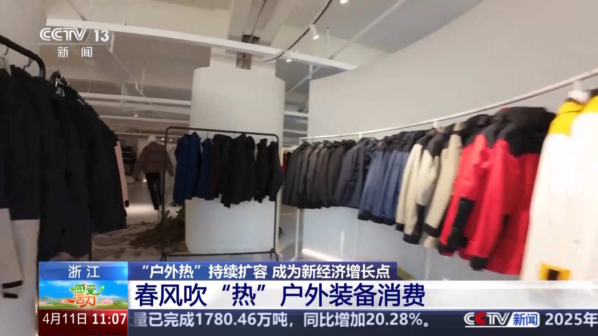总台记者 高珧:三门与冲锋衣的缘分,要追溯到上世纪90年代,当时许多三门人在全国各地做服装生意。随着户外运动越来越热门,消费者对户外用品的个性化需求也在不断增加。就拿冲锋衣来说,像越野、登山、徒步这些户外场景中,冲锋衣都成了“刚性需要”。