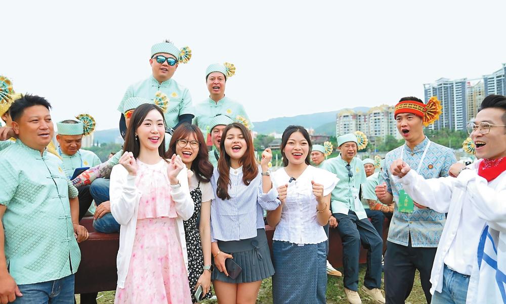 13日上午,青年们首先到澜沧江观礼台前参加傣历1387年新年节庆祝大会,在当地向导讲解下了解傣族龙舟赛的文化内涵。龙舟赛不仅是傣族新年的传统竞技,更承载着祈愿风调雨顺、民族团结的深刻寓意。