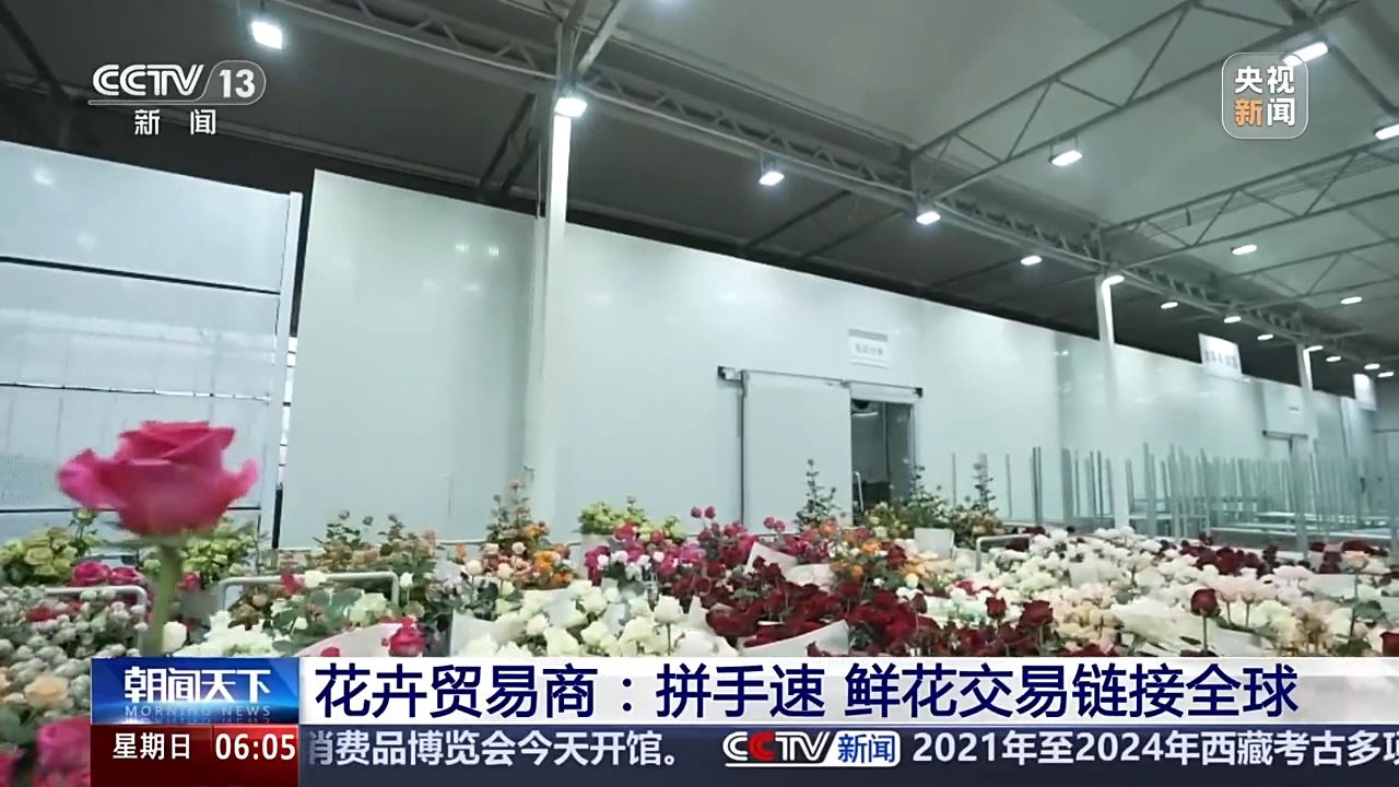 昆明花卉生产物流基地负责人 隋艳辉:今年我们鲜花出口大概增长20%。目前有韩国、东南亚国家,还有中亚,现在每一天大概有10吨出口。