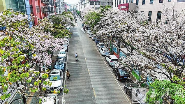 进入四月,位于红塔区人民法院附近的玉荷花竞相开放,粉白相间的花朵装点着城市的街道,让行人们放慢脚步,感受着花朵带来的清新与雅致。