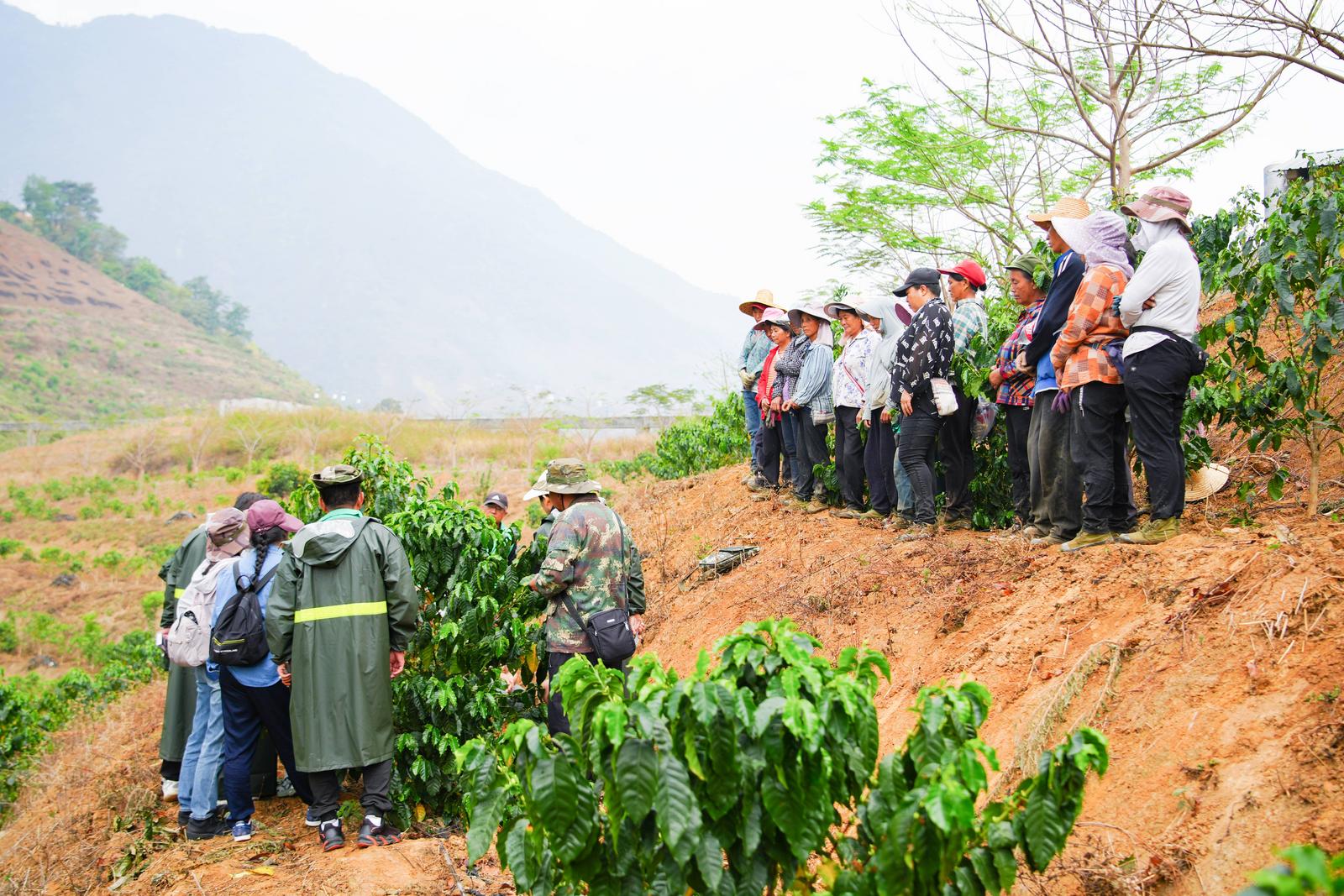 学员们积极参与,纷纷上手实践,将理论知识与实际操作紧密结合,通过“听讲解、观操作、动手练”的沉浸式学习,有效提升了咖啡种植及管护技能。