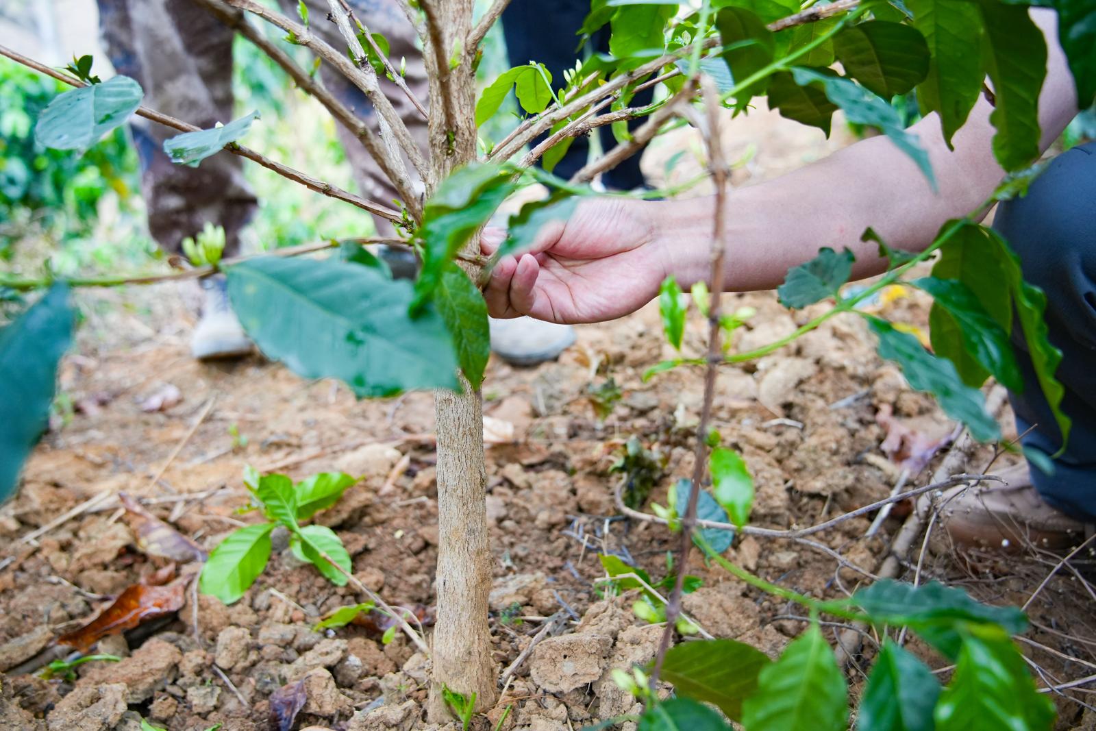 实操课环节,大家走进大练地街道新建村精品咖啡产业融合核心示范区,肖兵详细演示了咖啡的栽种、施肥、除草、修枝打叉等技术,并手把手指导学员们如何正确运用这些技术。