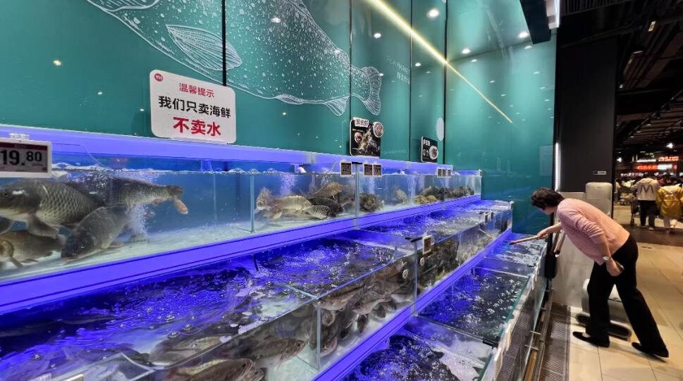 在海鲜区,师傅们熟练进行活鱼剖杀、切段清洗。东西买好了,不知道怎么烹饪好吃?超市直接附上免费菜谱。肉禽柜台也可以根据顾客需求提供切丝、切片、绞肉、剥皮、剔骨等服务。
