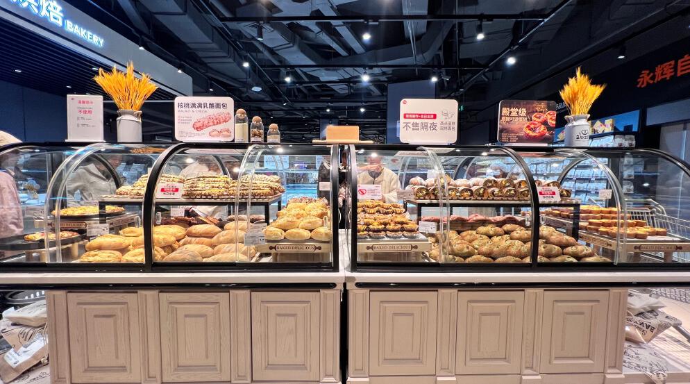 一进超市,“胖”式服务,让消费者体验感满满。熟食区、烘焙区、水果区随处可见的“本柜台商品当日出清”标识,还有根据不同区域消费者需求,放置的放大镜、“1斤约几个”换算提示、易碎品打包服务。