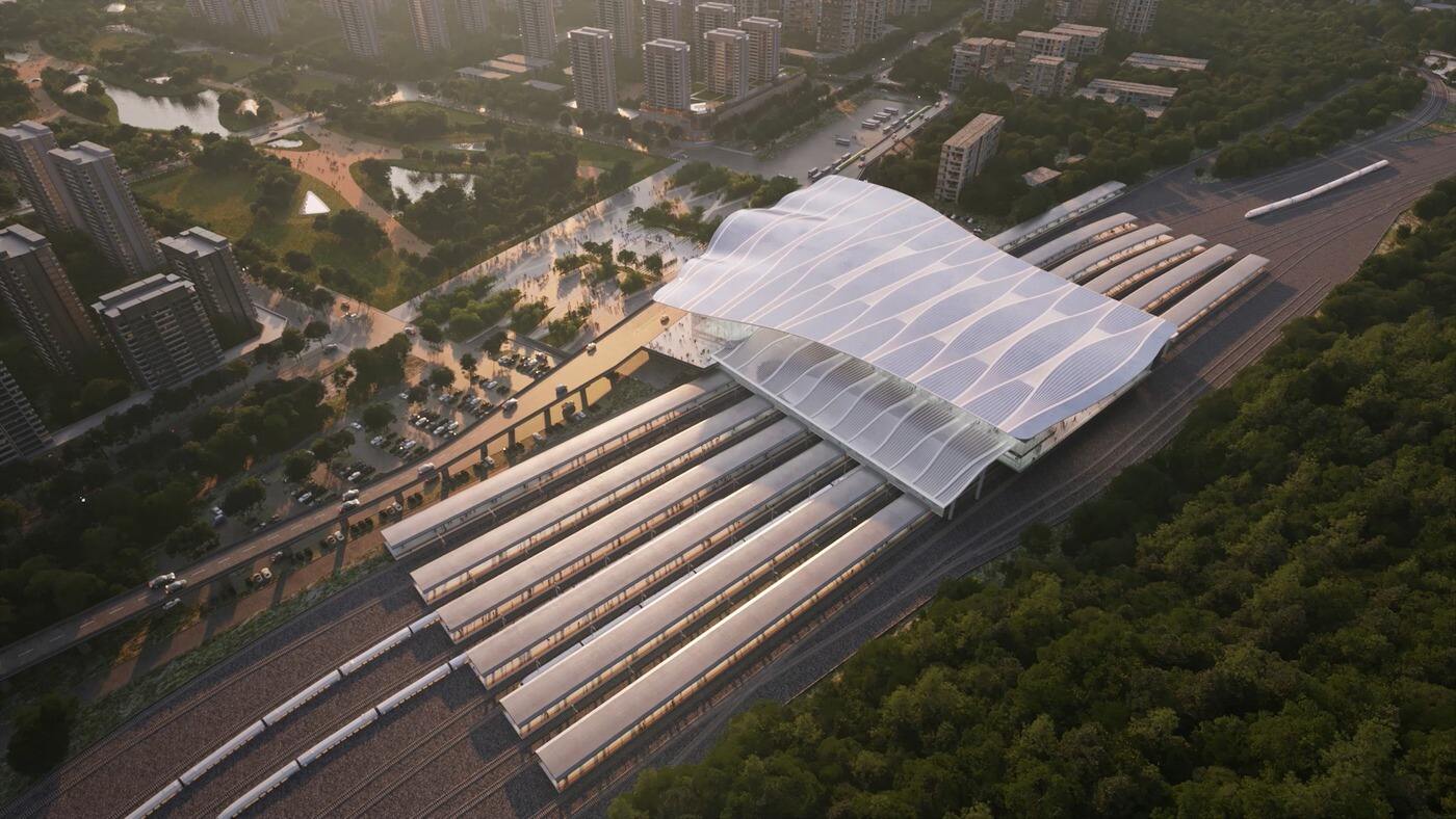 站房以高架站房形式布局,高架层集成了高架候车厅、进站大厅、综合服务大厅等核心功能区;站台夹层设置车站办公及设备用房,站台层配套旅服商业设施,出站层规划出站通廊与出站厅,实现旅客“零换乘”便捷出行。根据规划,建设工期为24个月,预计于2027年上半年建成投用。