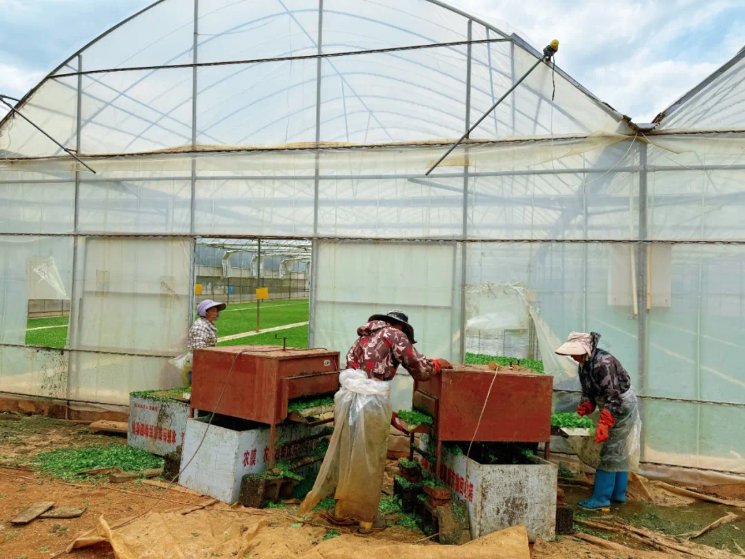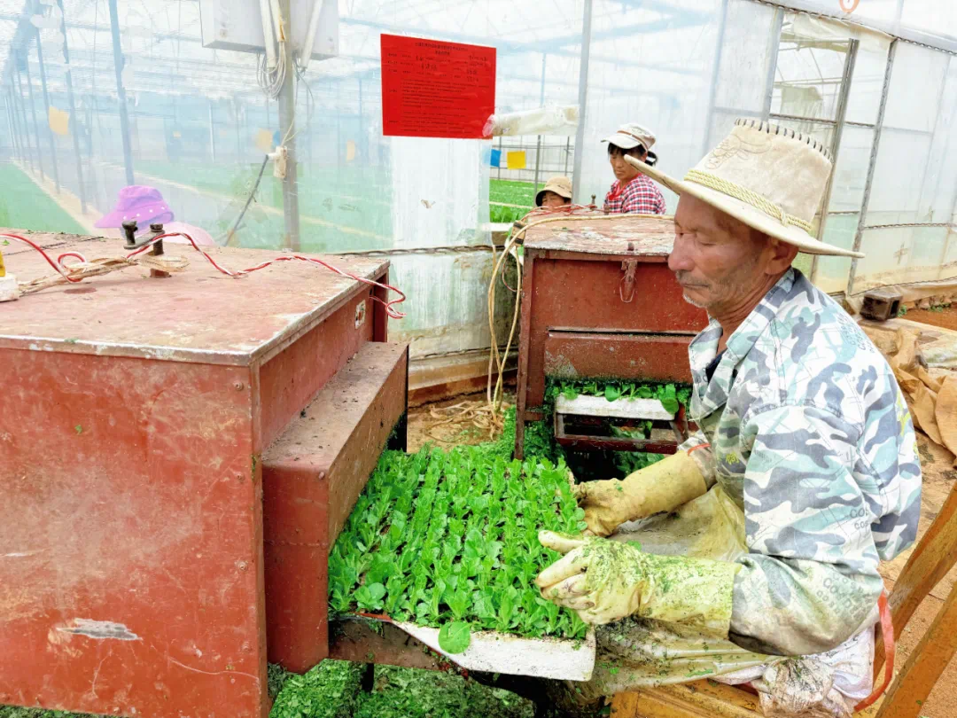 在七河镇育苗点,9名务工的村民同时作业,每天可完成4500盘烟苗的剪叶工作,满足约560亩烟田的需求(按每亩8盘计算)。机械化作业不仅缩短了工作时间,还确保了剪叶的均匀性和规范性,使烟苗生长更加健壮。