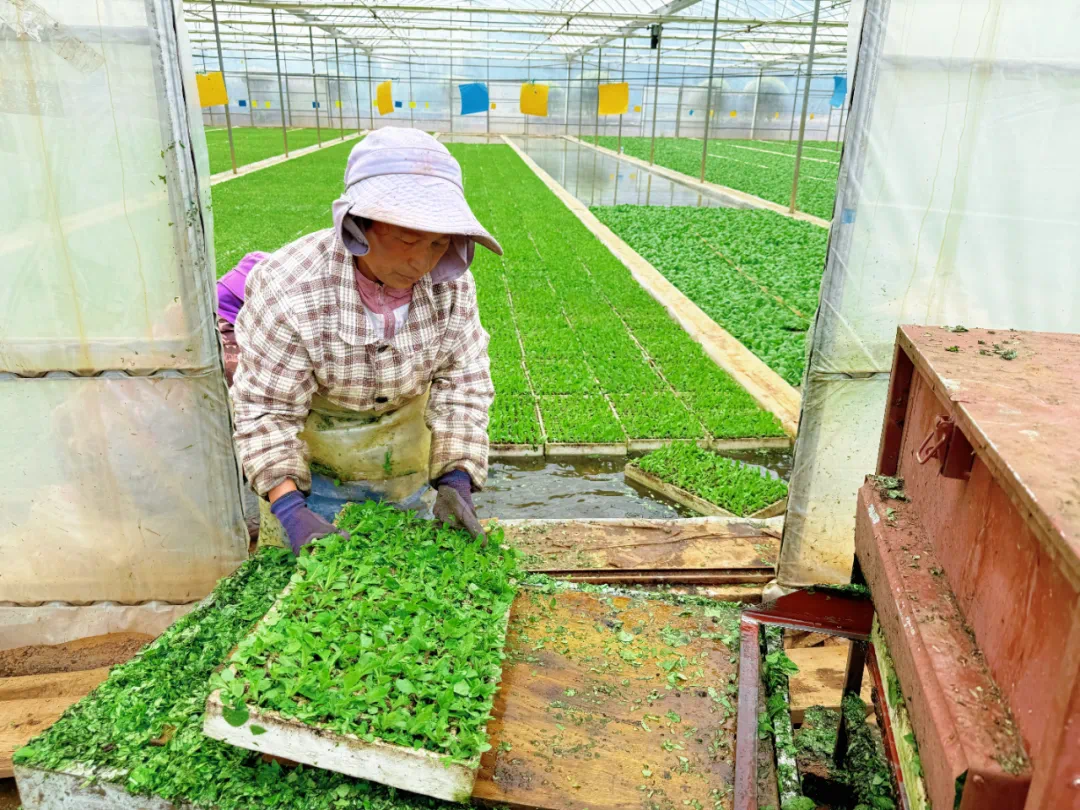 过去,务工的村民需要手工修剪烟苗的底脚叶,每人每天最多只能完成40盘,不仅费时费力,还难以保证剪叶质量。2024年,金山烟叶工作站5个育苗点引进永胜地区的技术,自制底脚叶剔除机器,使工作效率大幅提升。如今,一名务工的村民每天可处理500盘烟苗,效率提高10倍以上。